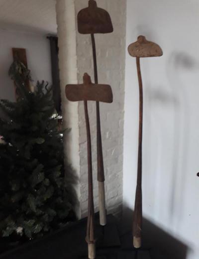 Wij plaatsen deze schoffels op een voetstuk, met of zonder het houten handvat.
